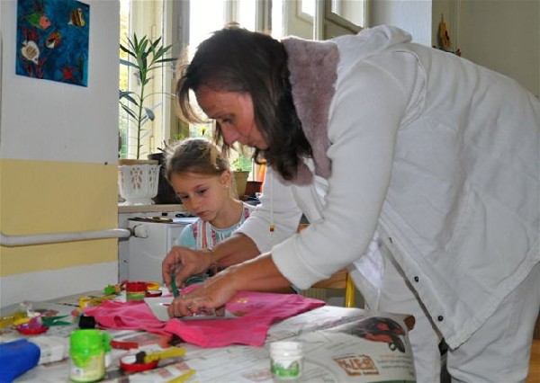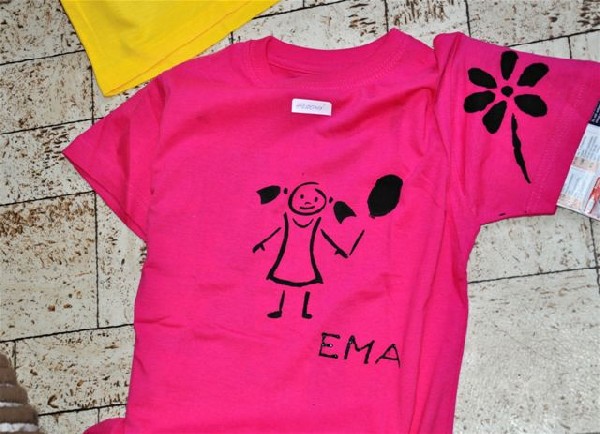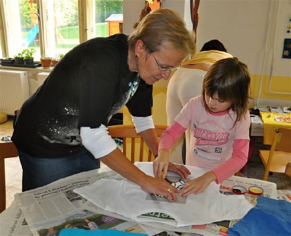 Ema Hesová maluje své tričko.