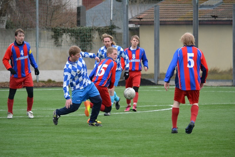 Fotogalerie "2014" Zimní turnaj E-ON Český pohárPopelín-Studená 9:5 (4:2). V dalším kole zimního turnaje na nás čekal soupeř ze Studené. První poločas jsme nezačali dobře, chyběl nám pohyb, vázla přihrávka, 20 minut jsme se hledali. Poté jsme si vytvořili šance, které jsme dokázali proměnit a do kabin jsme šli za příznivého stavu 4:2. I ve druhém poločase bohatém na góly jsme si udržovali před soupeřem náskok. Při střelecké chuti byli Pavel Pacholík a Kristián Tolkner. Góly: P. Pacholík 4x, K. Tolkner 3x, J. Víteček, R. Stejskal.