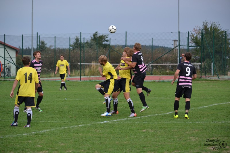 Fotogalerie "2015" 3. kolo okresního přeboru 2015-2016 Dešná - PopelínDešná-Popelín 1:2 (0:0). Ve třetím kole jsme zajížděli na hřiště Sokola Dešná. Po dvou posledních nelichotivých výsledcích jsme chtěli konečně zabrat a přivést nějaké body. V prvním poločase měli mírnou převahu domácí hráči, přesto jsme více šancí měli my, ale zůstali nevyužity. Ve druhém poločase jsme se tlačili před branku domácích a snažení vyústilo v branku, o kterou se postaral Vojta Princ. Naše radost z vedení dlouho netrvala, po chybě ve středu hřiště nás domácí přečíslili a stav zápasu srovnali. Poté se ale trefil Pavel Pacholík a přiblížil nás ke třem bodům.Závěr zápasu byl hektický, domácí všechny síly dali do útoku, ale důležitou výhru jsme ubránili. Góly: V. Princ, P. Pacholík.