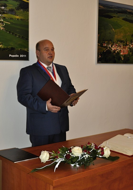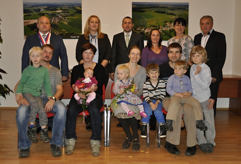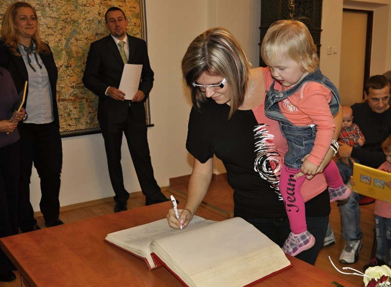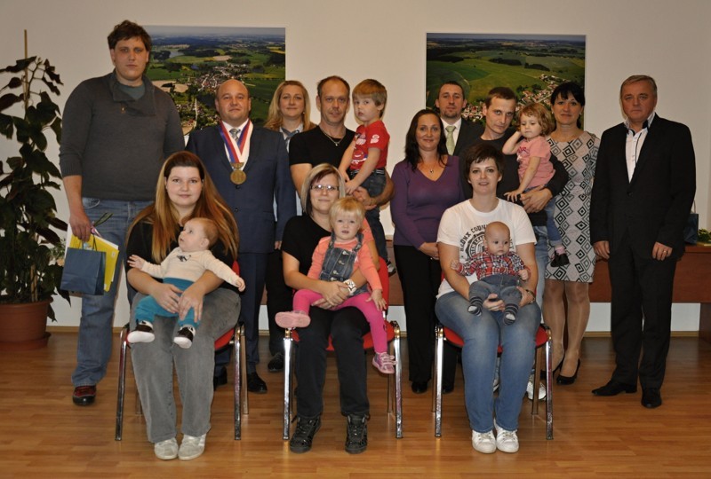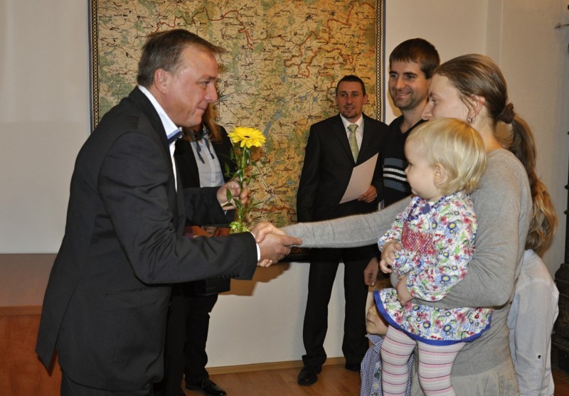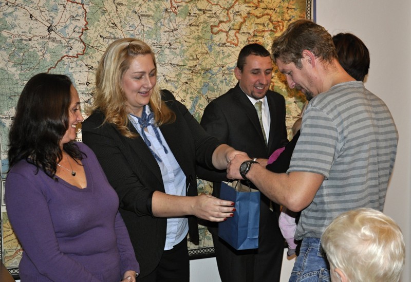 Místostarosta obce Ing. Jiří Houška gratuluje rodičům