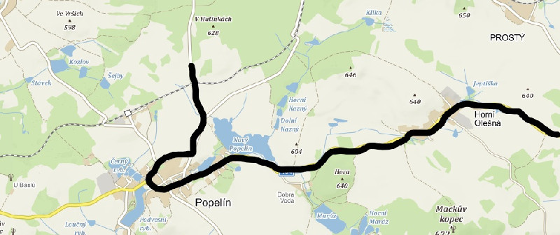 Do Popelína přijedou cyklisté od Žirovnice, před Popelínem zabočí doprava a po komunikaci na Jahodově kolem hřbitova projedou k obecnímu úřadu směrem k restauraci u Kadleců, kde zabočí vlevo a po hlavní silnici budou pokračovat do Horní Olešné. Horní Olešnou projedou směrem na Panské Dubenky. V Popelíně u garáží před čp. 204 bude sprintérská prémie.