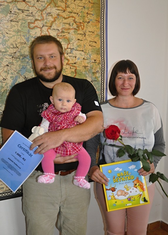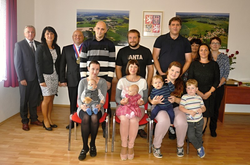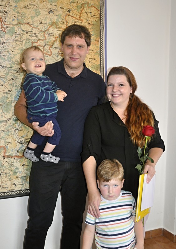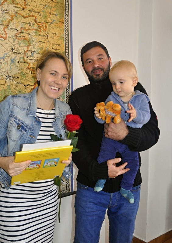 Místostarosta obce Ing. Jiří Houška gratuluje rodičům